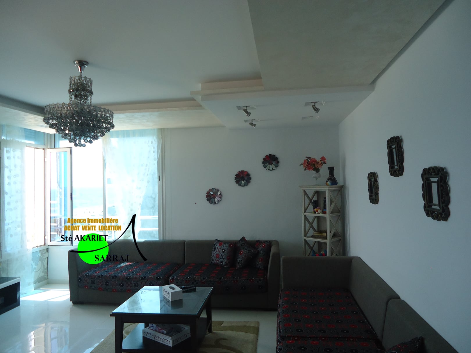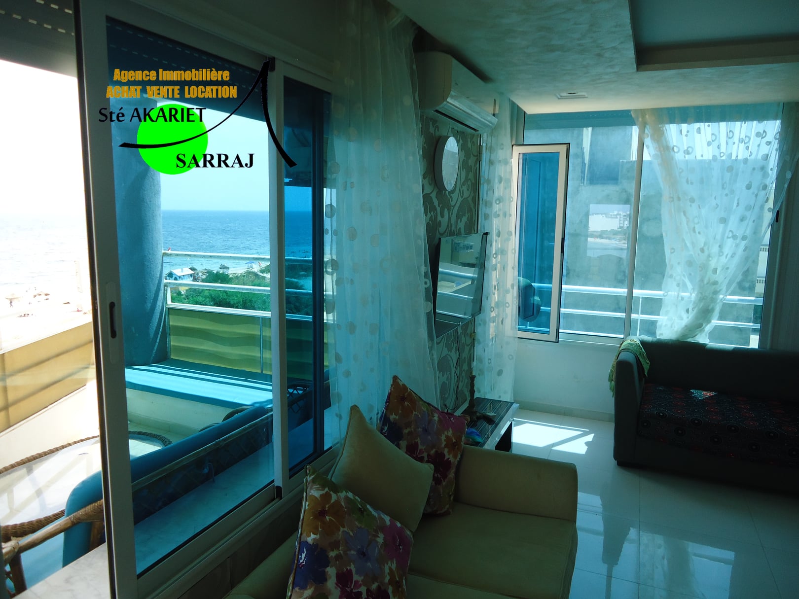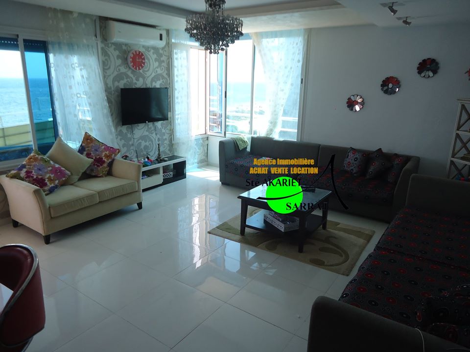 La Sté Akariet Sarraj Propose dans une résidence avec ascenseur au 3éme étage à Chatt Mariem Tantana nous mettons en location un Appartement S+2 richement meublé et climatisé contient