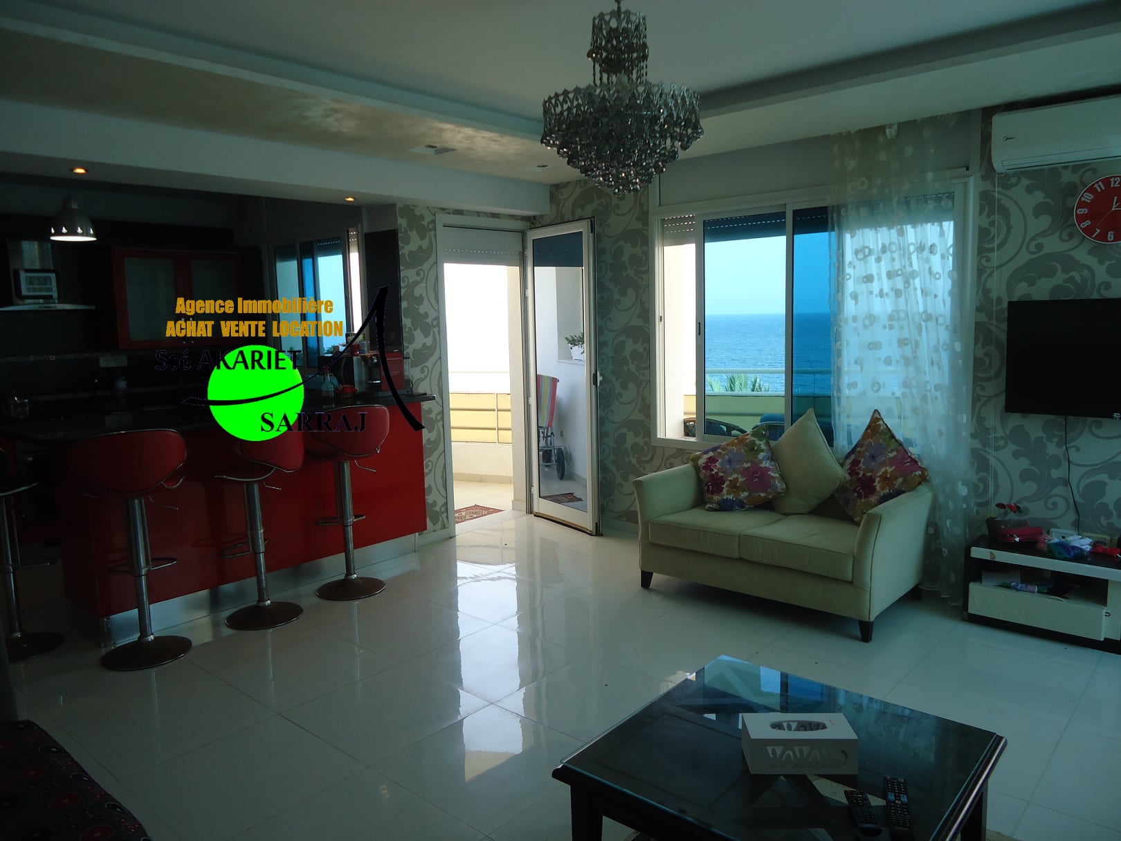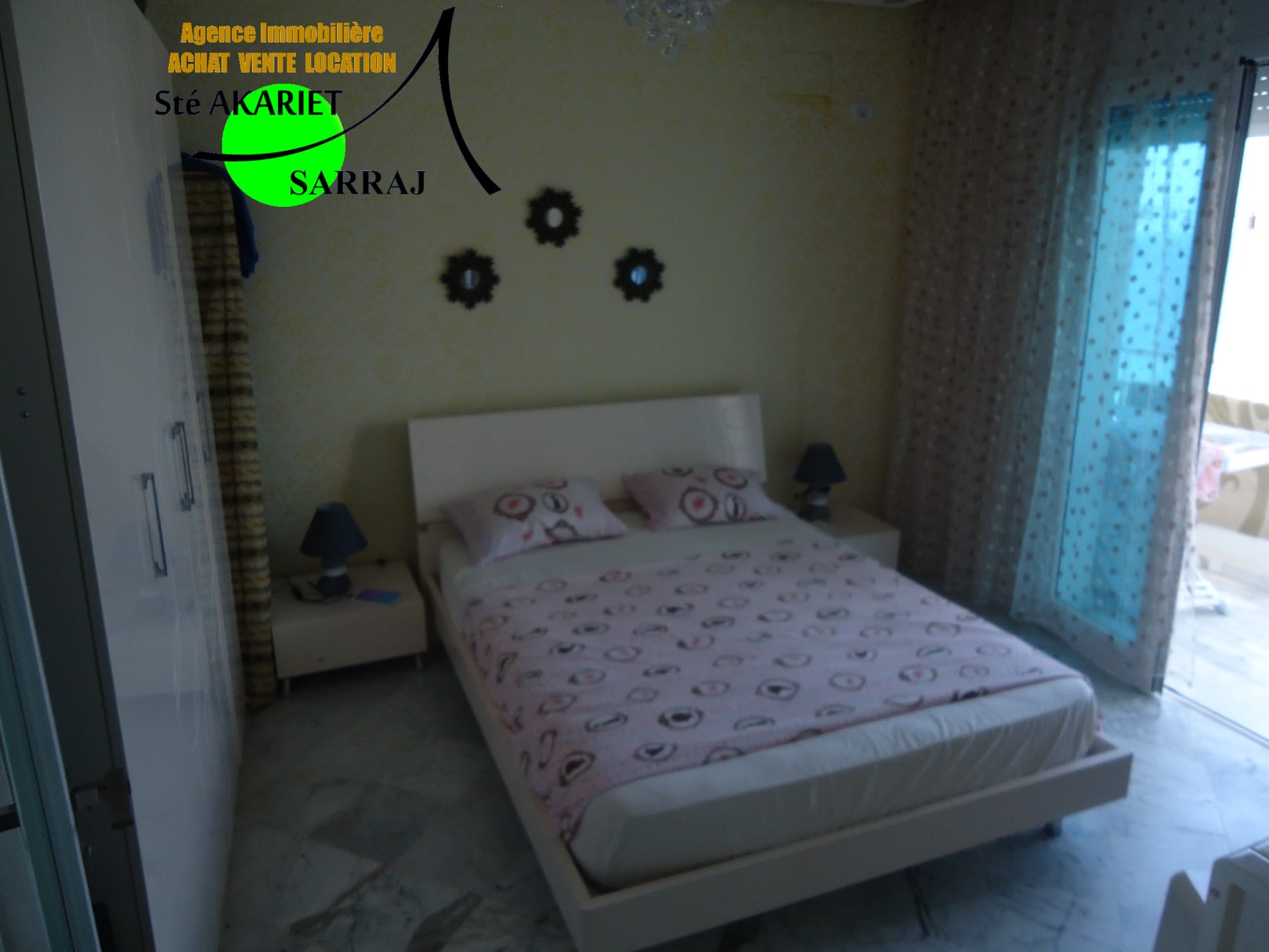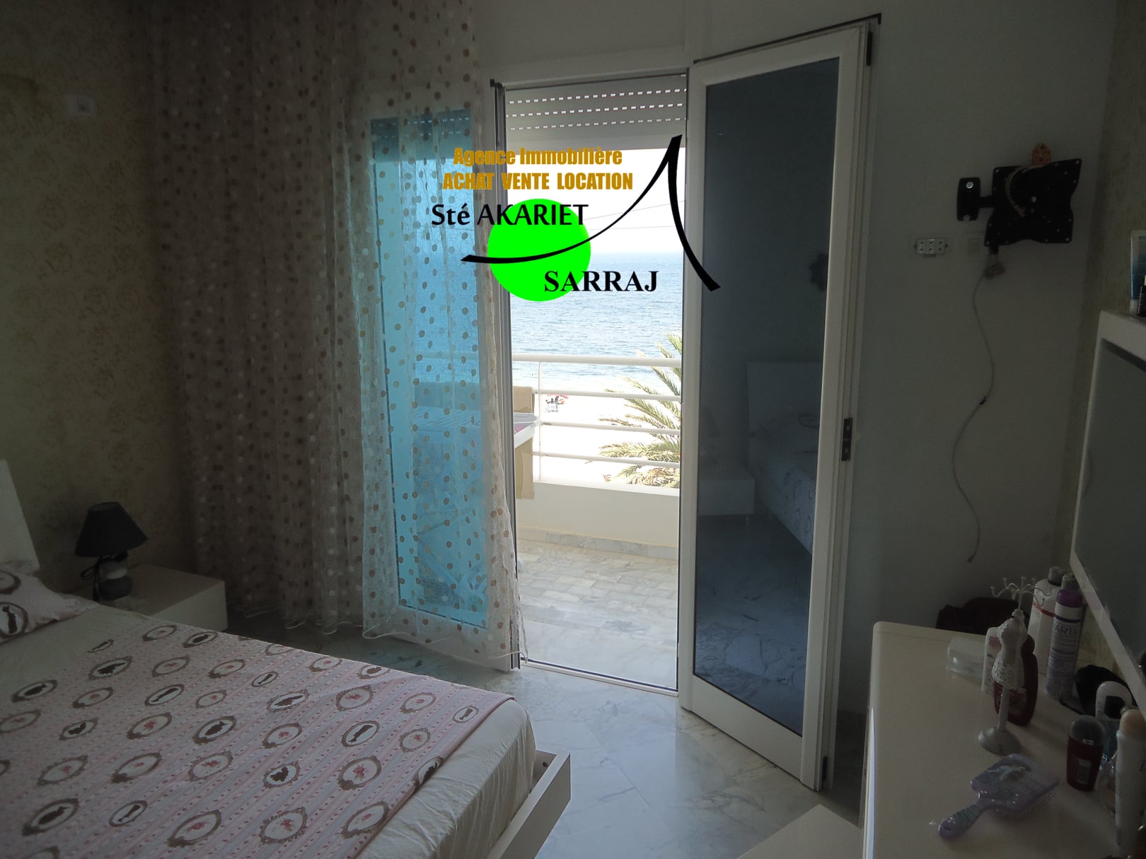 La Sté Akariet Sarraj Propose dans une résidence avec ascenseur au 3éme étage à Chatt Mariem Tantana nous mettons en location un Appartement S+2 richement meublé et climatisé contient