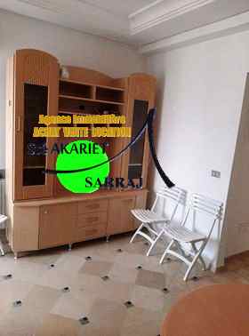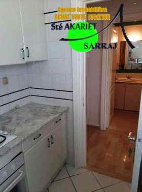 l’appartement est composé d’un salon lumineux,balcon, une chambre à coucher , une salle de bain, une cuisine agencée et très bien équipée d'une plaque,un four, et une hotte même de l’électroménager : machine à laver, réfrigérateur ...,. Il est doté par gaz de ville, chauffage centrale, store, climatisation + parking sous sol.