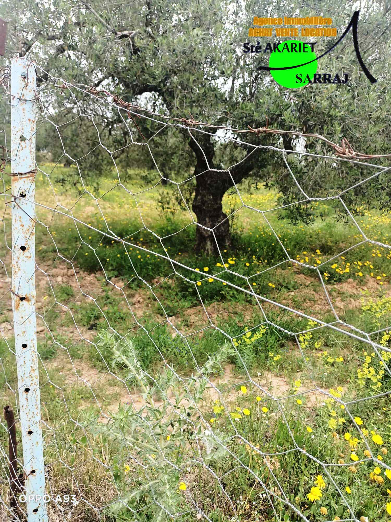 La_Sté_Akariet_Sarraj Propose #À Vendre #Senya Clôturé de Superficie [#6500M²] #Planté Des #Oliviers #Sur La #Route Prés #Dar Zitouna Situé #Sidi Bouali