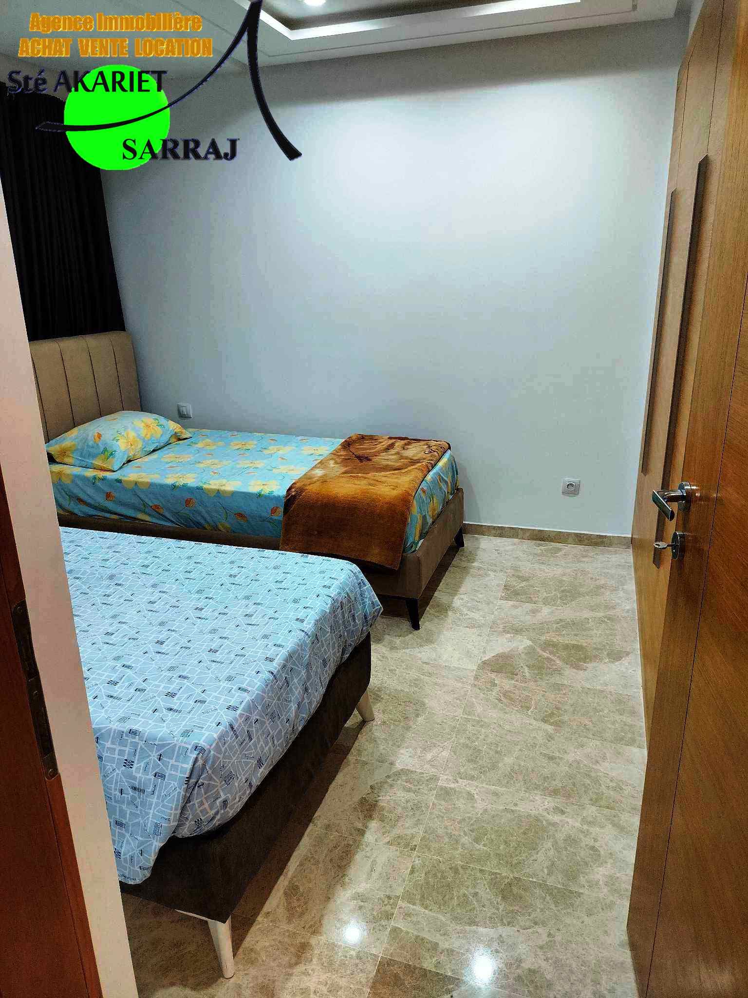#À LOUER #La Sté Akariet Sarraj Vous Propose #Appartement (#S+2) #Bien Meublé #Haut Standing Situé Au #6éme étage Avec #Ascanceur Dans Une Petite Immeuble Sécurisé Et Gardé #Dans Une Emplacement Stratégique, Proche De La #Zone #Touristique de #khzema, à 10 minutes à Pied de la #Plage.