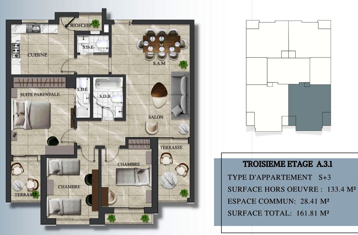 #La Sté Akariet Sarraj Propose #A VENDRE #Des Appartements (#S+2 /#S+3) #Trés Haut Standing #Neuf Et #Jamais Habité du #Réz De Chaussée JusQu'à #6éme étage #Dans Une Emplacement Stratégique #Sahloul (4)