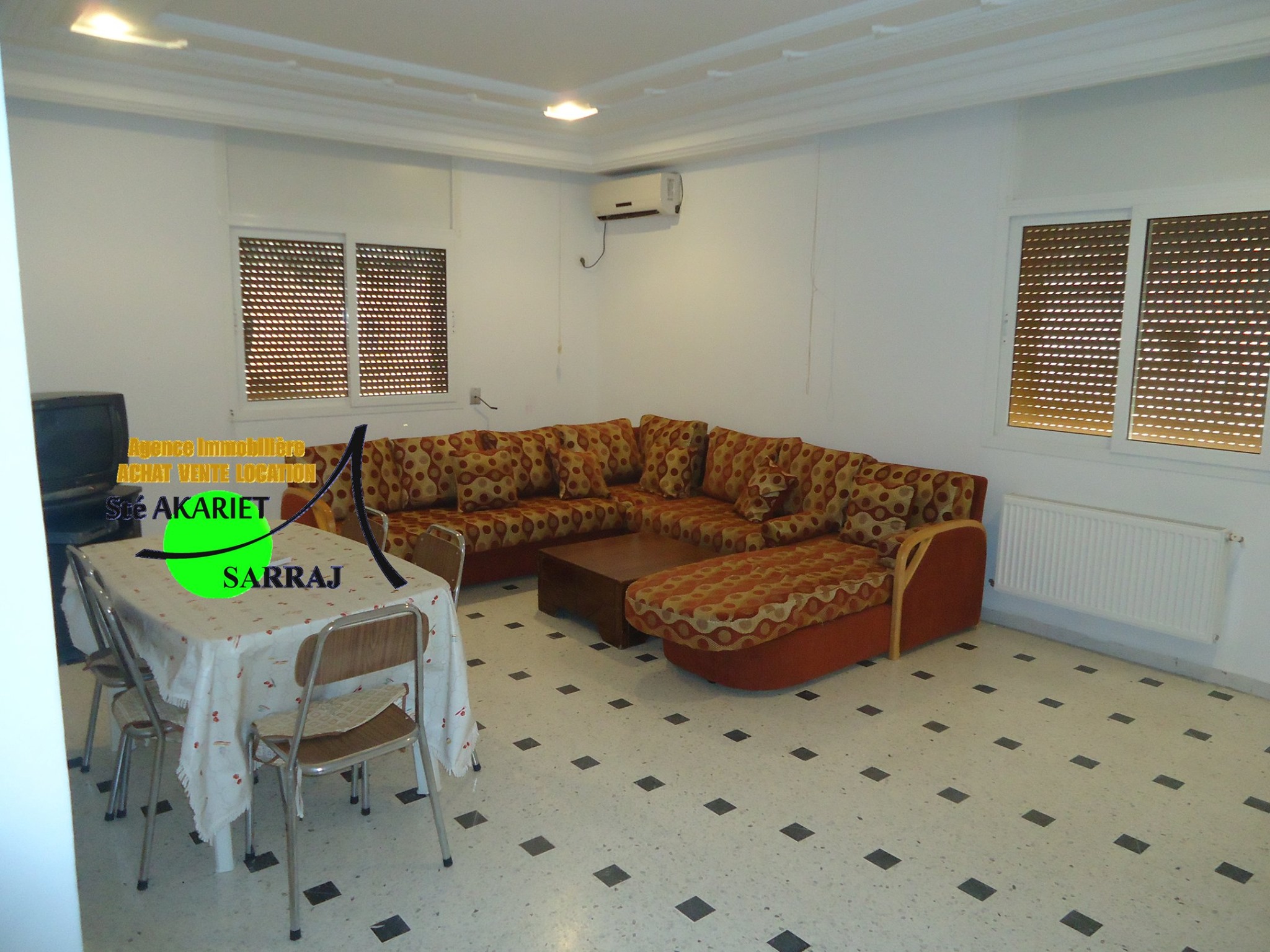 un appartement S+2 Sans Meuble... Type d'annonce : location Nature d'annonce : Offre Surface : 0 Prix : 600 Ville : Sousse Adresse : Derriére Monoprix Hammem Sousse Date : 26-07-2021 >>> détail